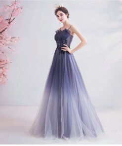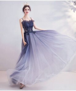 A Line Blue Prom Dress Spaghetti Strap Long Formal Dress