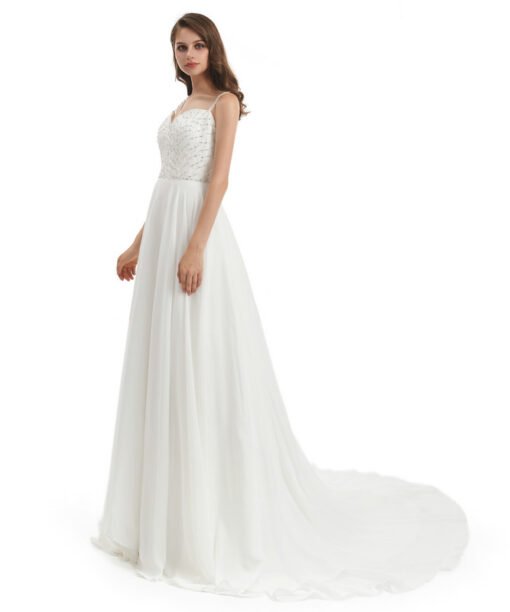 Backless wedding dress spaghetti straps a line sleeveless beaded simple sexy bridal dress with train 2022 new arrival