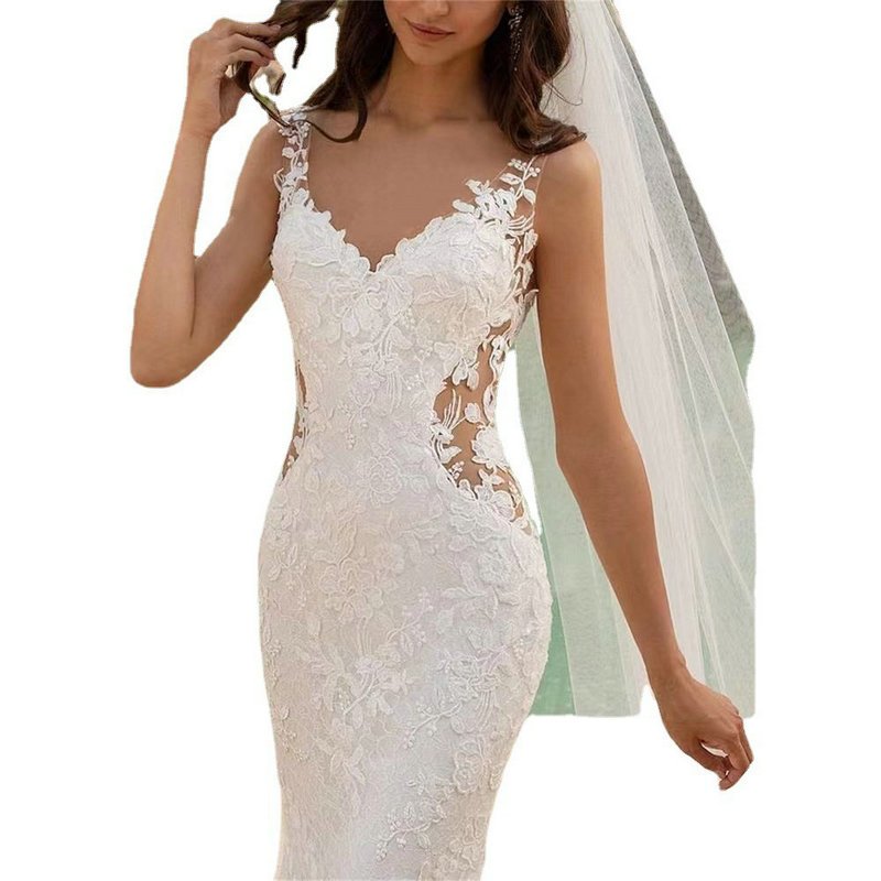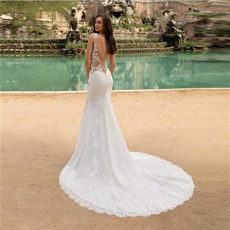 Beach summer wedding dresses v neck mermaid sleeveless lace hand made gorgeous plus size mermaid bridal gown custom size available