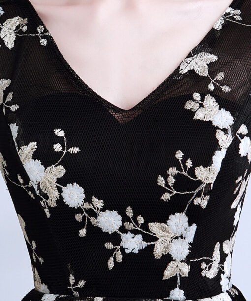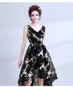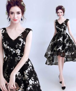Black High Low Prom Dress V Neck A Line Cocktail Dress