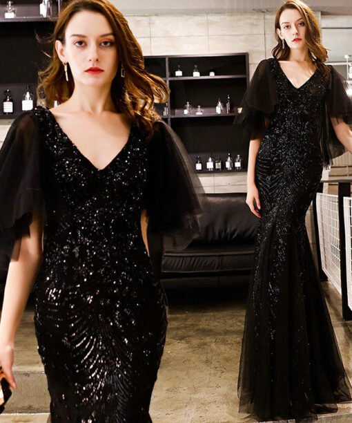 Black Mermaid Formal Dress V Neck Slim Prom Dress Sale