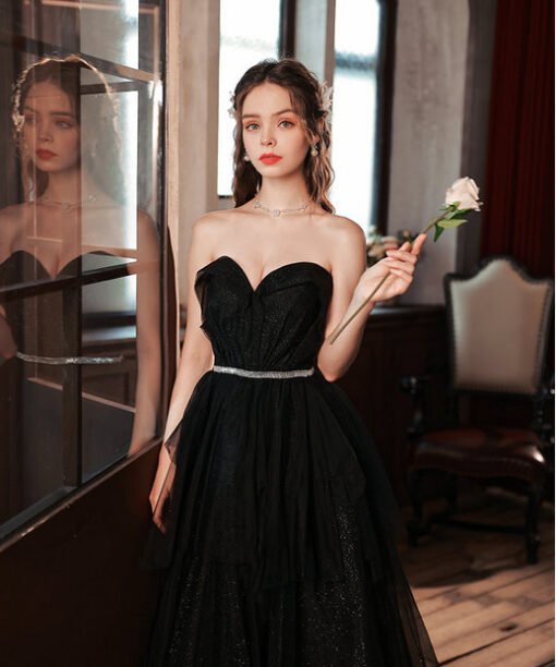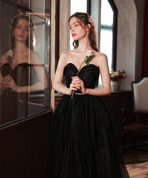 Black Strapless Prom Dress Sweetheart Strapless A Line Formal Dress