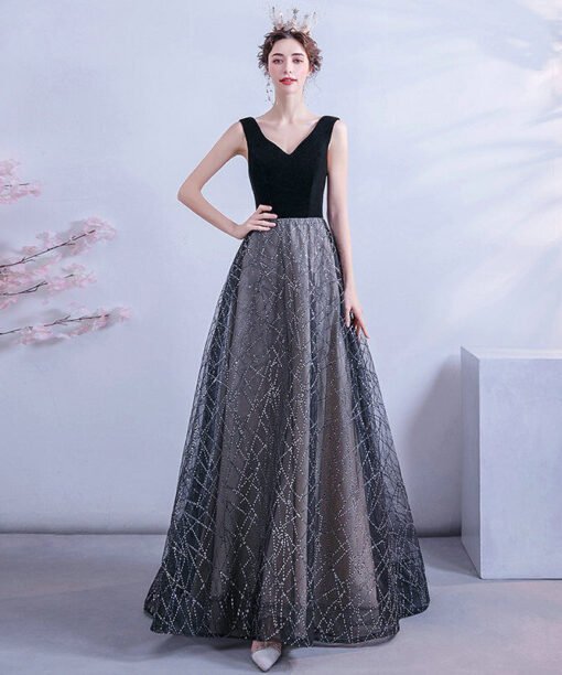 Black V Neck Formal Dress