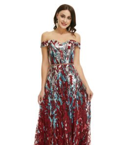 Burgundy long prom dress off the shoulder a line long floor length zipper back sequins formal dress 2022 wholesale online.