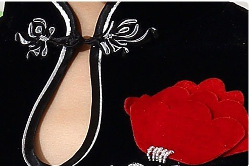 Tea Length Black Cheongsam for Women. Hand-made Beaded and Applique. High quality Pleuche Fabric.