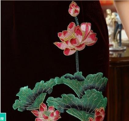 Mother of the Bridal Cheongsam Dress with Embroidery and High quality Pleuche. Vintage Chinese Dress up. Suitable for Autumn and Winter, Purple and Burgundy in stock.