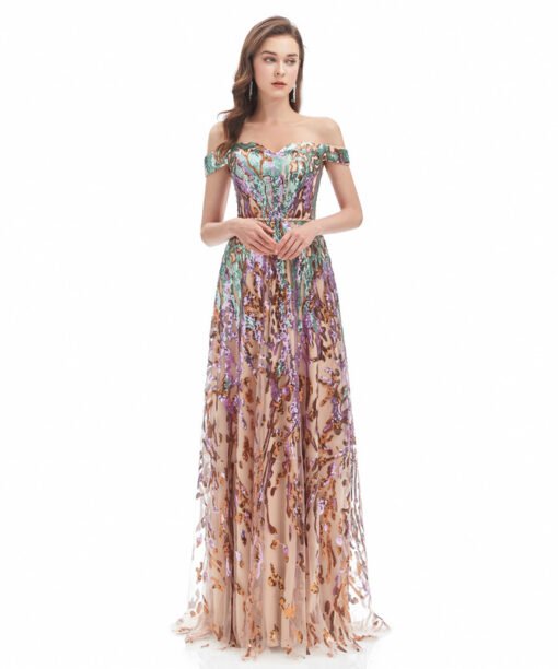 Colors Prom Dress Off The Shoulder A Line Paillette Evening Dress
