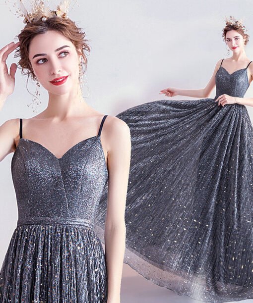 Dark Blue Prom Dress Spaghetti Strap A Line Long Evening Dress