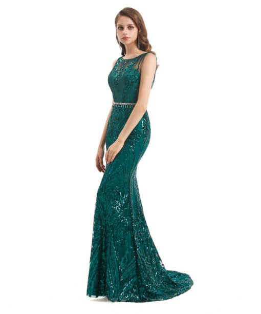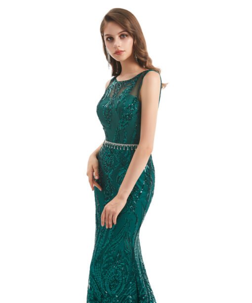 Dark green prom dress spaghetti straps sleeveless open back sequins sexy evening formal dress wholesale