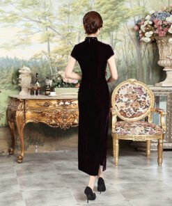 2017 Sexy fashion long cheongsam online. High quality Luxury pleuche fabric. Hand-made Beaded and Paillette. Both short sleeves and bracelet sleeves available. Four colors in stock.