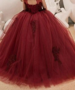Flower Girl Dress Red Sleeveless Ball Gown Lace Kids Party Dress