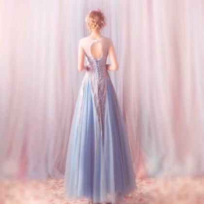 Formal Dress Light Blue Gold A Line Prom Evening Party Dress