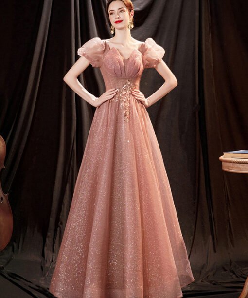 Gold sparkly prom dress sweetheart short sleeve a line floor length lace up affordable princess long formal dress party dress.