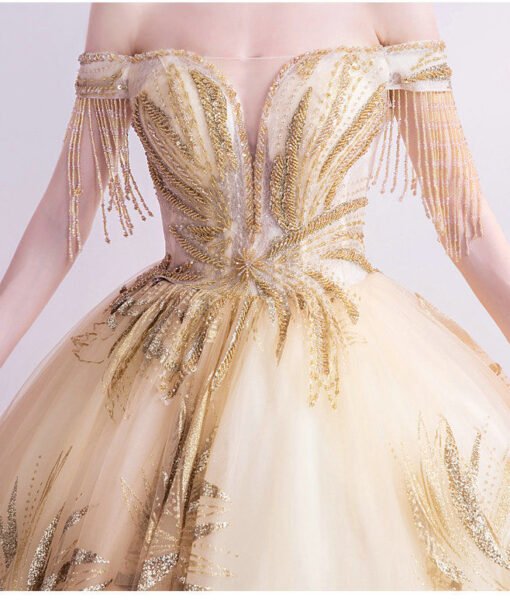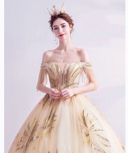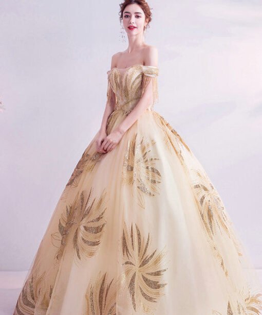 Gold Wedding Dress Off The Shoulder Ball Gown Prom Dress