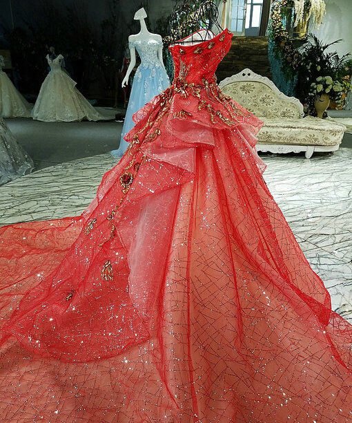 Haute Couture Ball Gown Embroidery Red Wedding Dress Online