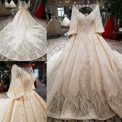 Haute Couture Off Shoulder Wedding Dress With Train Hand Made Bridal Gown