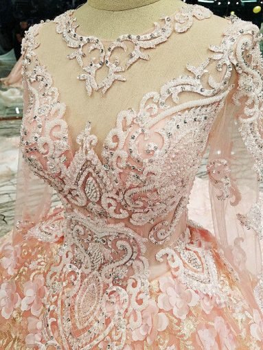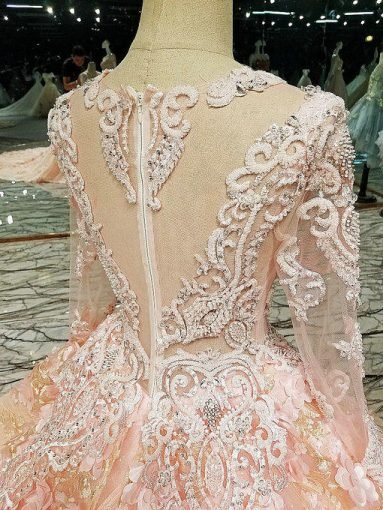 Haute Couture Pink Long Sleeve Wedding Dress Ball Gown Bridal Gown