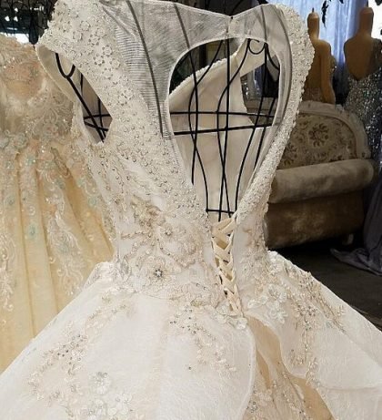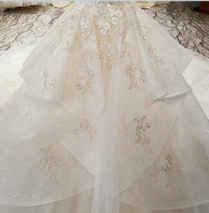 Haute Couture V Neck Ball Gown Wedding Bridal Dress With Train High Quality