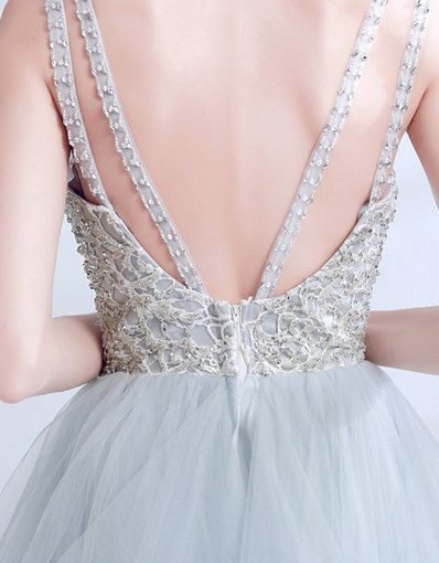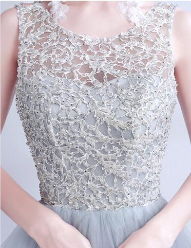 Gorgeous U neck A-line backless sleevelss lace net long prom dress. Affordable long evening party dress on line.