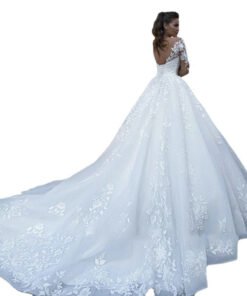 Long sleeve lace wedding dress sweetheart neckline long sleeve ball gown with train lace up backless bridal gown 2022