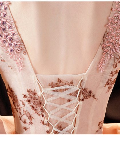 Long sleeve pink dress affordable a line embroidery lace flowers formal prom dress floor length long lace up party dress for sale