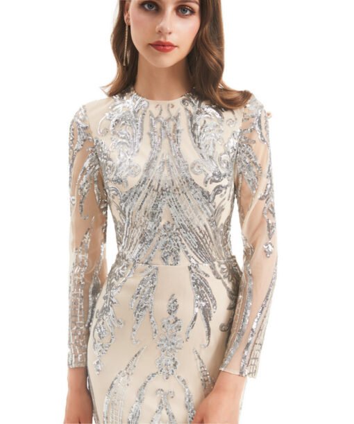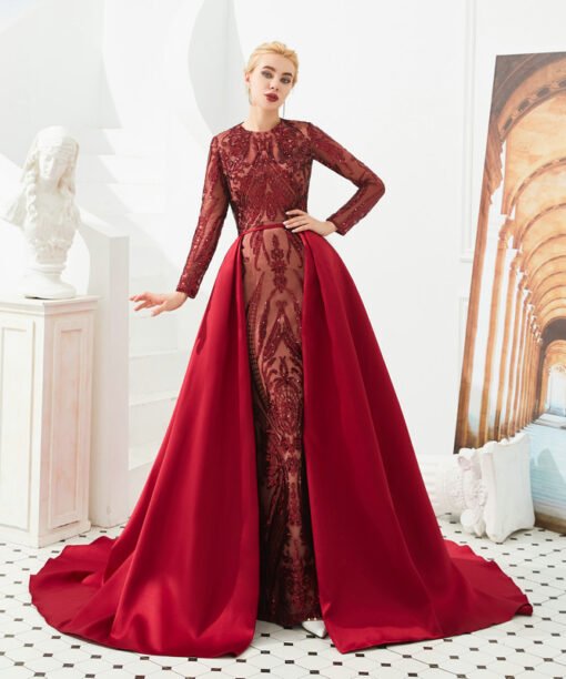 Mermaid Dress With Detachable Train Long Sleeve Sequin Evening Gown