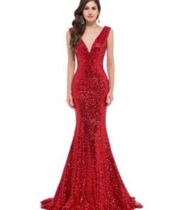 Mermaid Prom Dress Under 100 V Neck Sleeveless Paillette