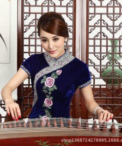 New Products Mother Qipao for sale. High quality pleuche fabric. Hand-made beaded and paillette.