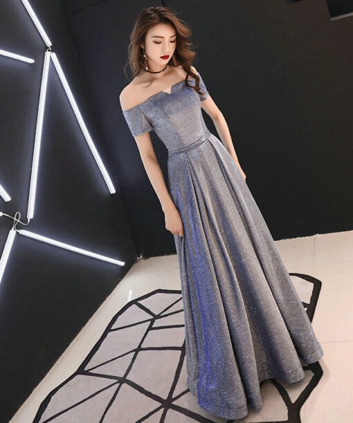 Off the shoulder a line prom dress affordable short sleeve floor length long bling lace up formal wedding guest dress wholesale for sale