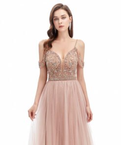 Pink backless prom dress straps a line sexy beaded formal evening dress wedding guest dress for sale