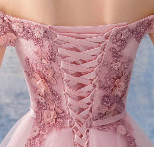 Pink short prom dress off the shoulder a line lace flowers high low plus size formal cocktail dress affordable lace up dress for women