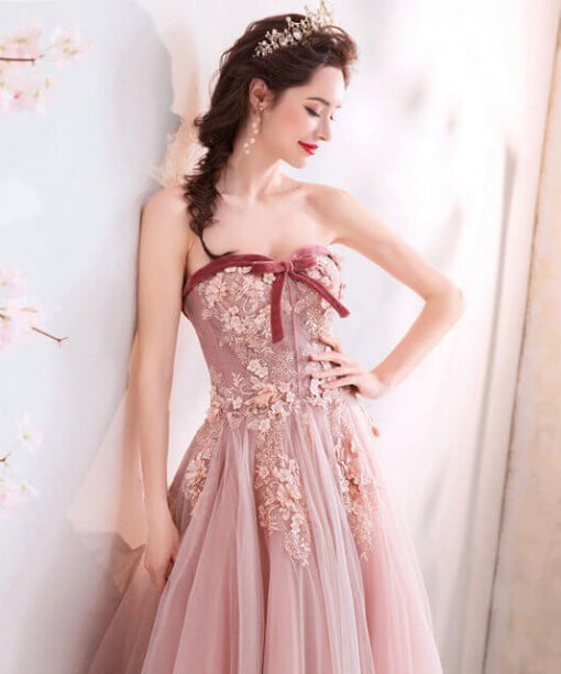 Pink Strapless Prom Dress