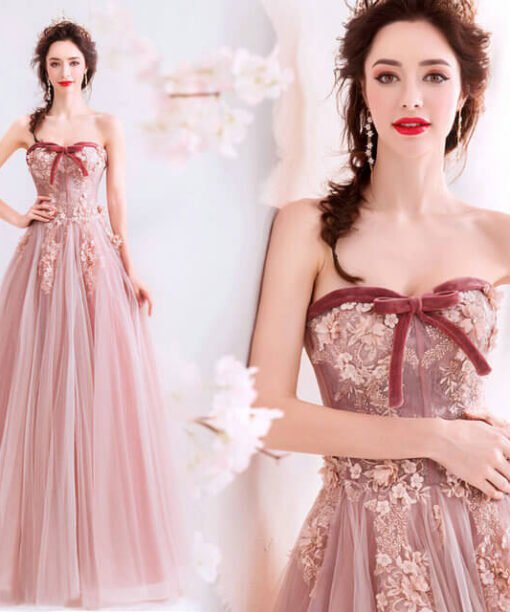 Pink Strapless Prom Dress Sleeveless A Line Long Birthday Dress