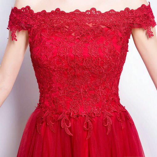 Off Shoulder a line prom dress red. Floor length lace up short sleeves prom dress 2017.