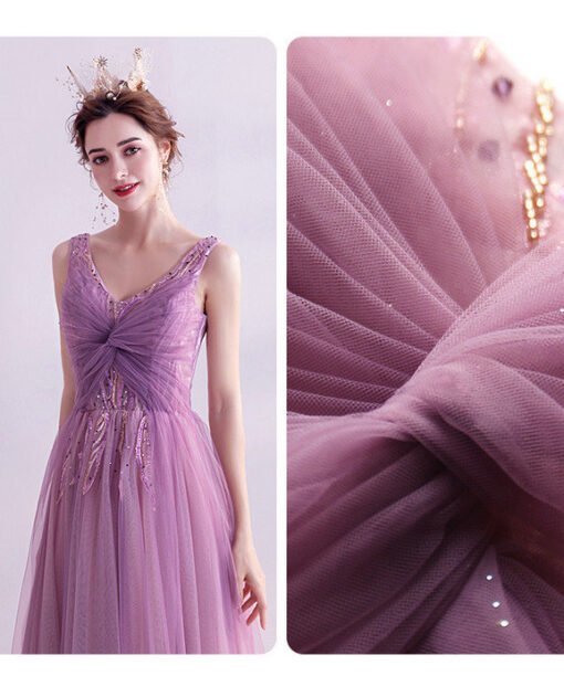 Purple Pink Prom Dress V Neck A Line Long Evening Dress Sale