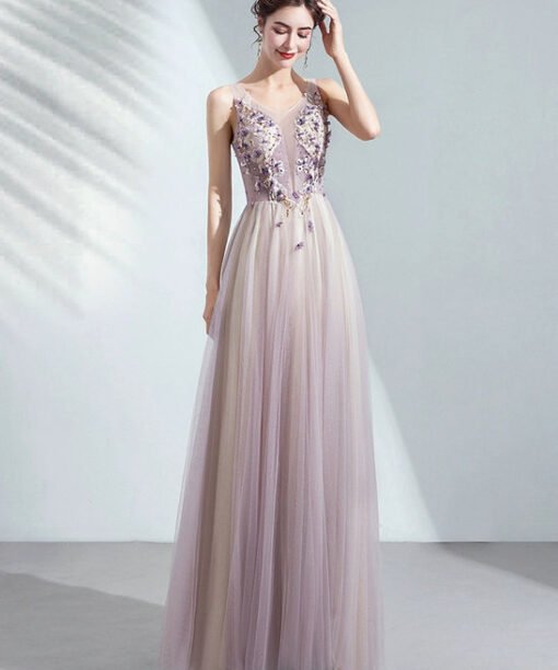 Purple Prom Dress With Flowers
