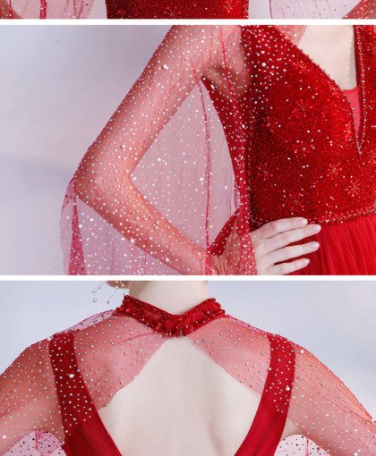 Red bridal dress v neck ball gown sleeveless open back lace up floor length beaded prom dress with cape affordable sweet 15 quinceanera dress.