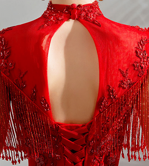 Red Crystal Prom dress High Neck A Line Long Evening Dress