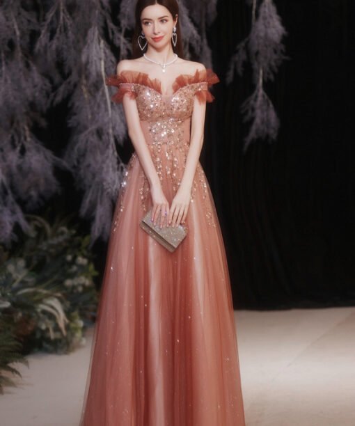 Red Formal Dress Off The Shoulder A Line Sparkly Prom Dress 2021