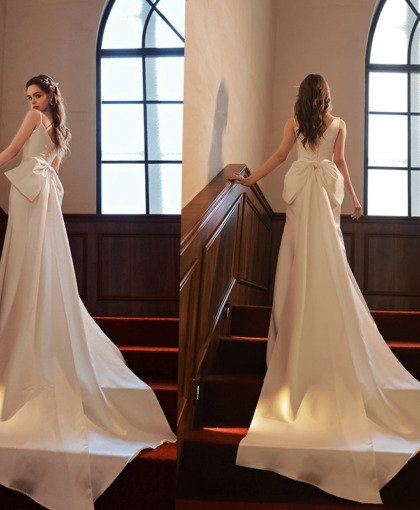 Satin mermaid wedding dress spaghetti strap simple sleeveless lace up bowknot bridal dress with train 2022 new arrival