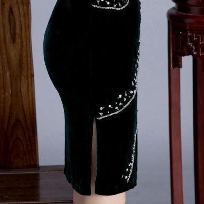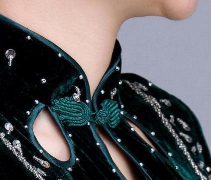 Sexy Short Cheongsam Bracelet Sleeves, hand-made beaded and paillette, mading by high quaity Pleuche fabric. both Green and Burgundy available in stock.