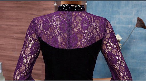 Luxury Sexy Long Cheongsam for women, making of high quality fabric pleuche. Hand-made beaded. Both Purple and Black available. Suitable for party or daily wearing.
