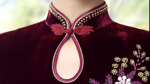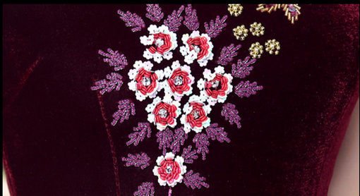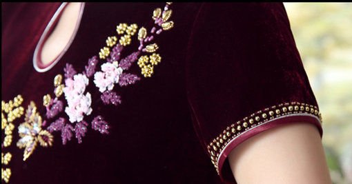 Hot selling Short Sexy Cheongsam for women. Luxury Pleuche fabric. Hand-made beaded and paillette. Both short sleeves and middle length sleeves available.