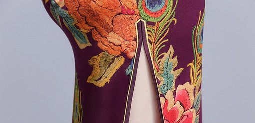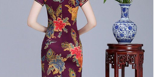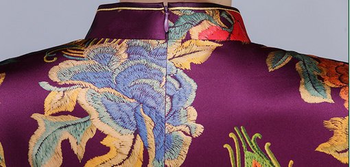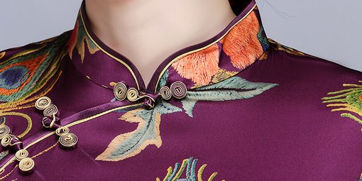 Silk Modern Cheongsam for mother. It is made of high quality silk(Watered gauze fabric). It is a healthy material which is very confortable for wearing in Summer.