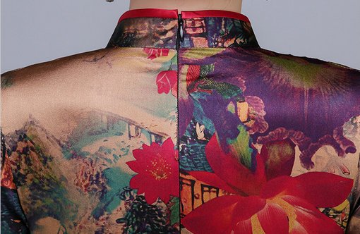 Luxury Sexy Silk Cheongsam. It is made of high quality silk(Watered gauze fabric) which is a comfortable and breathable fabric. It is perfacting for wearing in Summer.
