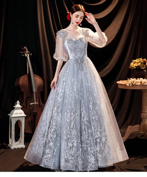 Silver quinceanera dresses long sleeve ball gown lace embroidery beaded floor length lace up hand made gorgeous prom dress.