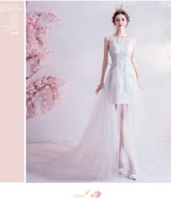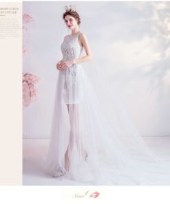Simple White Wedding Dress With Cap Sleeveless For Sale