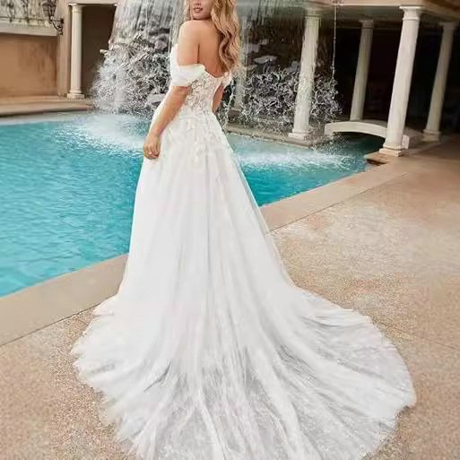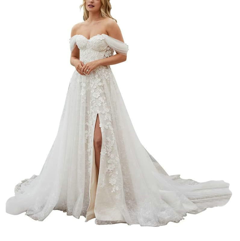 Slit Wedding Dress Off The Shoulder A Line Bridal Dress