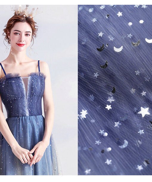 Spaghetti strap prom dress blue a line bling star floor length long affordable formal evening dress long party bridesmaid dress wholesale
