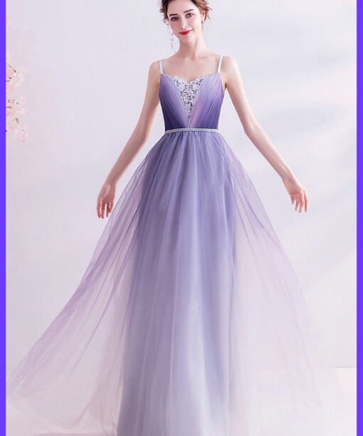 Strap Prom Dress Purple A Line Long Bridesmaid Dress
